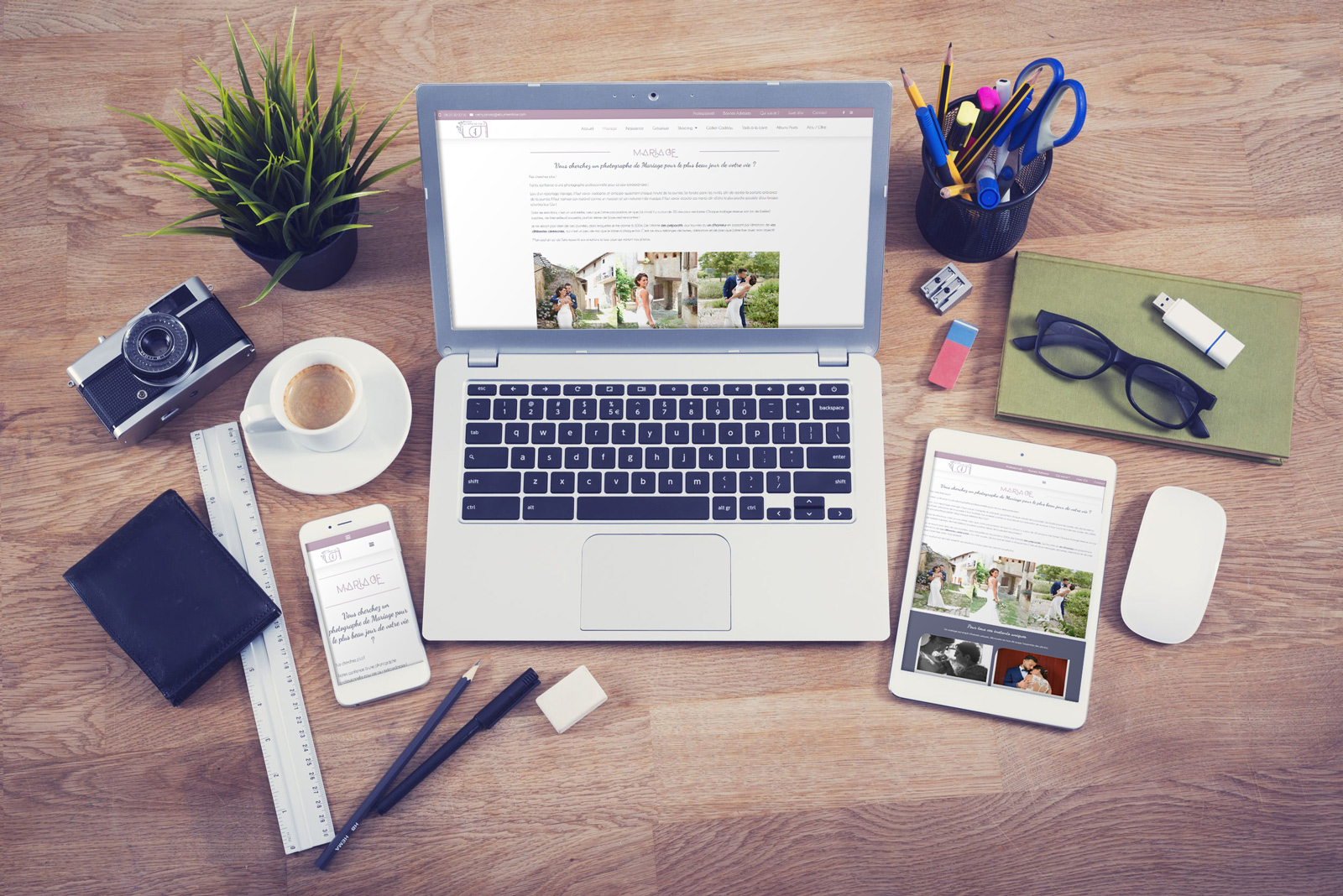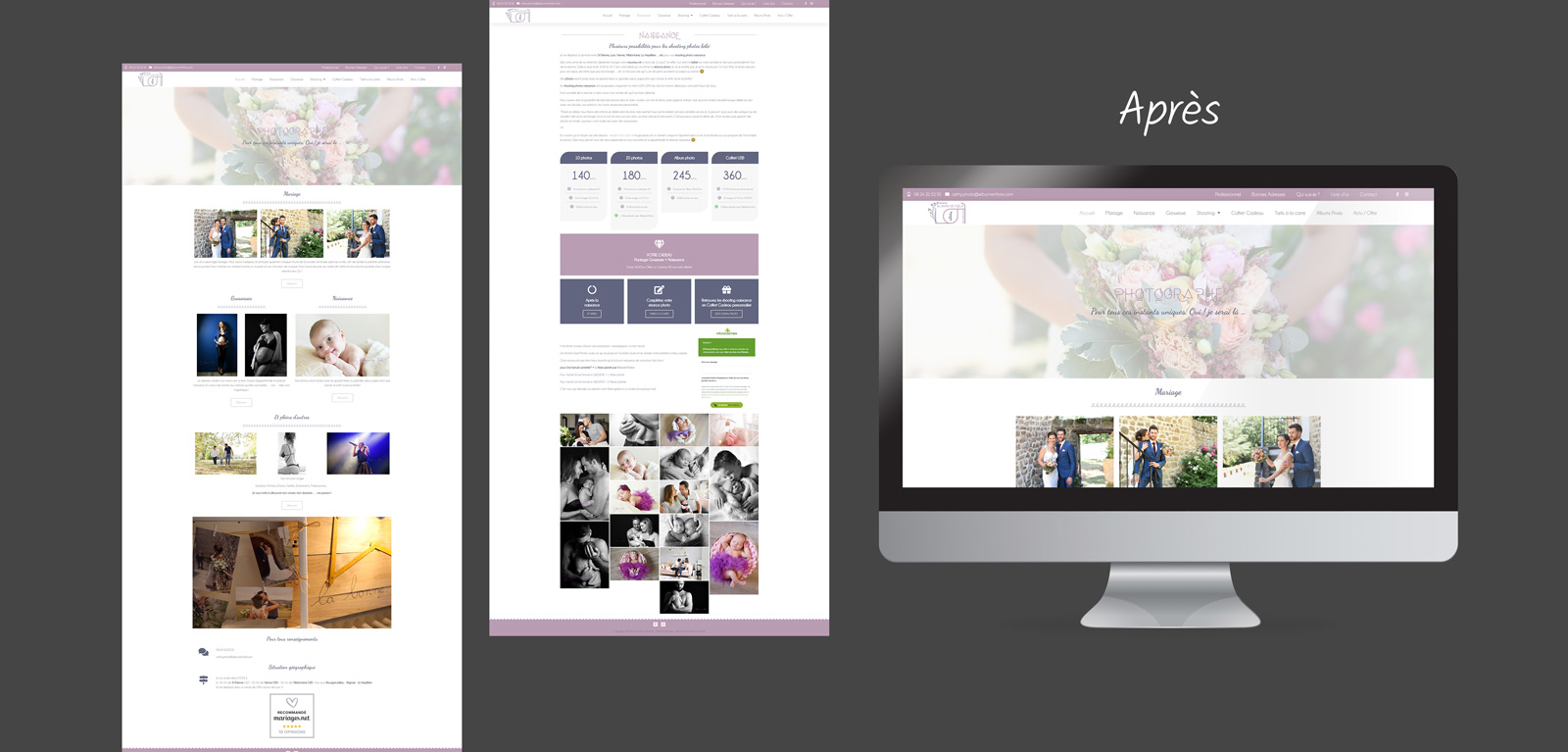 Étant photographe, possédant beaucoup de photos, un réel travail d’optimisation sur les images a été effectué afin que l’ensemble soit rapide au chargement même sur mobile.